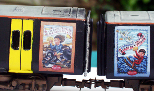 The transfers were made using 'Supercal' decal sheets, obtained from Galaxy Models & Hobbies, Ipswich. I used white-backed transfer paper for the main 'Ginsters' logos and clear transfer paper for the beach image in the centre of each carriage.
