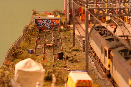 Regular viewers of either the layout or the website will notice the new electrification flashes on the side of the curtain warning; 'Danger of Death, do not touch the layout'!